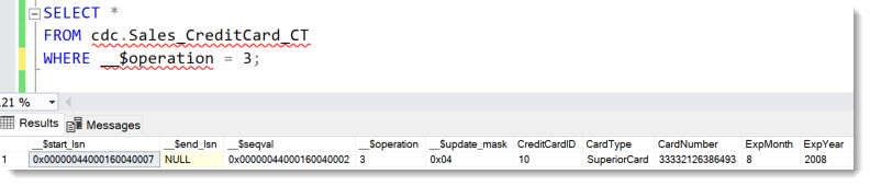 If Change Data Capture has been set up on a table, all changes are kept in a special capture table. This table is not audited by default. Querying the capture table discloses the data just as the original table:
