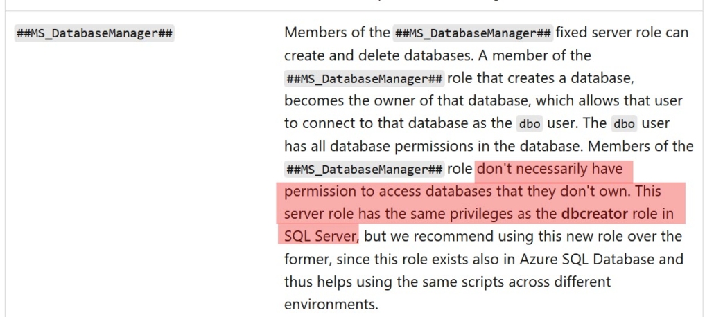 Looking back at the original announcement of this role (New server roles for Azure SQL Database and SQL Server 2022 in Public Preview), the intent was clear: