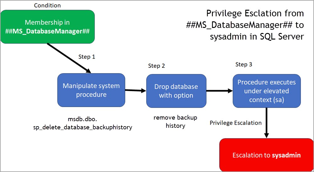 His findings show how members of the ##MS_DatabaseManager## server-role in SQL Server can escalate to sysadmin by chaining existing functionality in unexpected ways.